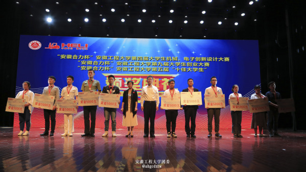 传承五四精神,他们是用奋斗书写青春、收获成长;掌声雷动,他们成为校园中的明星与榜样。在文艺汇演过程中,领导嘉宾分别为“安徽合力杯”安徽工程大学第四届大学生机械电子创新设计竞赛获奖者、第九届大学生创业大赛获奖者、第五届十佳大学生,以及2017年度五四红旗团委、先进团支部、优秀团员、优秀团干、2018年十佳歌手颁奖并合影留念。