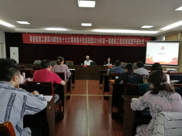 5月4日下午,省委教育工委第26期党的十九大精神集中轮训班(省委教育工委统筹、学校党委具体组织实施的学校副处级干部轮训班)暨学校2018年第一期教职工党员培训班开班仪式在1314会议室举行。校党委书记陈其工作开班动员暨专题辅导报告。会议由校党委副书记、校党校校长苏国红主持。
