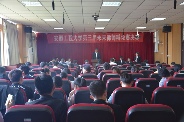 5月9日下午,由校教务处主办、人文学院承办的安徽省2018年大学生“未来律师”辩论赛安徽工程大学选拔赛决赛,在9教602隆重举行。本次决赛特邀芜湖中院民二庭副庭长张斗胜、鸠江区法院法官冯韵东以及法学系部分教师担任评委。人文学院部分老师、学生共100余人出席并观看了本场比赛。