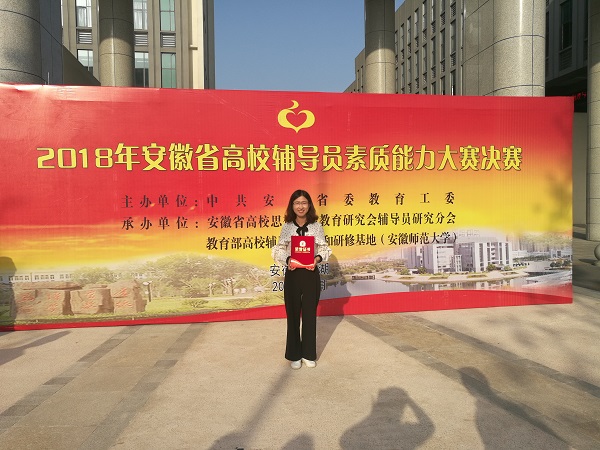 5月12日至13日,安徽省2018年高校辅导员素质能力大赛决赛在安徽师范大学举行。经过合肥、皖南、皖北三个片区复赛选拔,来自25所高校的30名优秀辅导员晋级本次决赛。我校生化学院辅导员章文宜参赛,并最终获得三等奖。