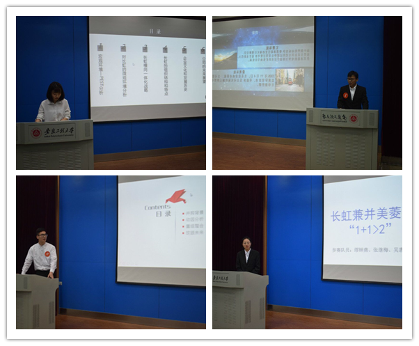 本次竞赛初赛阶段有200多名同学报名参加,经过笔试和复赛选拔,最终有六组选手脱颖而出入围决赛。决赛分为四个环节,“我是总经理”--PPT演示、“我是智多星”--问答题、“我是分析师”--案例分析题和“我是挑战王”--风险题四个环节。各组选手通过精彩的PPT演示,现场答辩以及答题环节向观众们展示了他们对现代企业管理知识的了解和掌握。PPT演示环节中,“儒风三人行”成员精彩的演讲逐层推进,向评委和观众完整的展示了他们PPT中的内容;问答题环节,“卓唯队”成员沉着冷静,精彩的答辩赢得了现场观众如潮的掌声;案例分析题是相对开放的题目,在这个环节中各组选手的随机应变能力和对问题的独到见解赢得了评委老师的鼓励和肯定。经过四个环节激烈的比拼,最终“儒风三人行队”获得一等奖,“至上励合队”、“初见队”获得二等奖,“启风队”、“头脑风暴队”、“卓唯队”获得三等奖,“火花队”、“选择题全队”获得优秀奖。