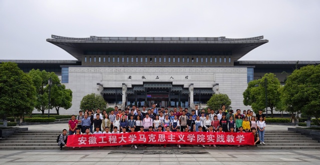 为更好贯彻教育部《新时代高校思想政治理论课教学工作基本要求》,在实践中推动习近平新时代中国特色社会主义思想进学生头脑,5月26日,我校马克思主义学院组织师生代表130余人赴合肥开展2017-2018学年度第二学期思想政治理论课教学实践活动。