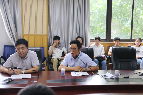 会上,学生处党支部书记胡家增介绍了支部共建目的、任务和要求。通过教工和学生支部共建,加强基层党组织标准化建设,发挥优势互补,更好地发挥支部在立德树人上的战斗堡垒和党员的先锋模范作用。数理学院党委副书记水心宝代表学院党委对学生处党支部来数理学院开展支部共建活动表示欢迎和感谢。希望金融学生支部加强联系和沟通,积极主动地做好支部共建的各项工作。