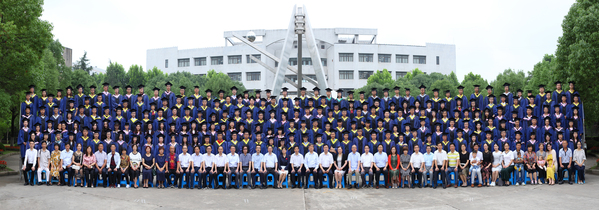 毕业典礼前,校领导、校学位评定委员会委员、毕业研究生亲友和全体2018届毕业研究生在校图书馆雕塑前合影留念。