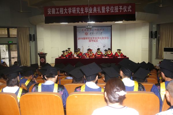 接着,校党委副书记苏国红宣读2018年安徽省品学兼优毕业生表彰文件。副校长郭兴众宣读2018届优秀硕士学位论文评选结果、校级优秀毕业生表彰文件。导师代表、数理学院教授吴小太和管理工程学院梁悦同学分别代表导师和毕业生在毕业典礼上作了发言。