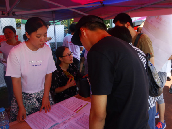 当日,学校大门入口一字排列的关于我校各学院专业介绍的展板、咨询会现场搭起的红绿蓝相间的“摊位”、招生单位张贴的醒目宣传海报引人注目。从上午8点开始,大批的考生和家长陆续涌入我校。咨询会现场人头攒动,气氛火爆,我校展台前也是围满了咨询者。家长和学生有的探头“取经”,有的驻足聆听,有的收集招生手册,还有的掏出小本记录。招生工作人员主动起身、讲解、比划,就招生政策、志愿填报、院校专业、就业前景等诸多问题为考生和家长提供意见和建议。