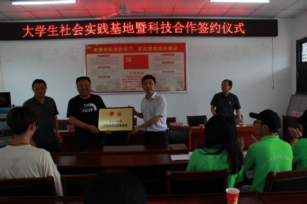 7月8日,同学们与老师们一起来到大埠口村的金寨县同创山核桃开发公司进行考察交流,双方就农产品深加工技术进行了交流,同学们也了解到农村产业扶贫在脱贫工作中发挥的作用。随后,与金寨县同创山核桃开发公司举行了大学生社会实践基地共建暨科技合作签约仪式,双方为“安徽工程大学社会实践基地”基地揭牌。