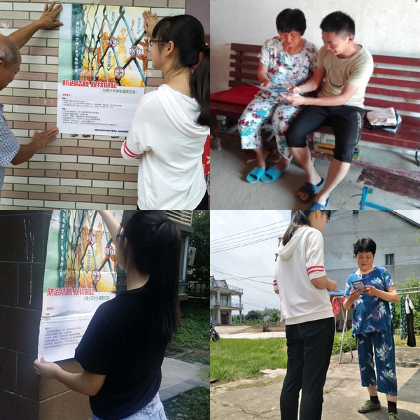 7月3日,志愿者们来到宣城市郎溪县飞鲤镇湖滨村党群服务中心。志愿者分发了宣传手册,并向大家介绍了结核病的相关知识并告诉大家防治结核病的方法。之后,志愿者们为当地村民表演了三个小的情景剧,更生动地让大家意识到结核病久拖不治的危害。最后,志愿者们用有奖竞答的方式“测试”了居民们的知识掌握程度,在大家的欢声笑语中结束了郎溪之行。