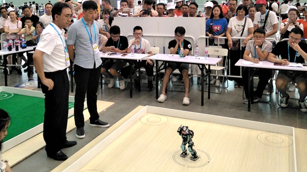 8月14日至16日,以“科创港城,智汇宜宾”为主题的2018中国机器人大赛在四川宜宾开赛。大赛共吸引了来自全国30个省、自治区、直辖市267所学校的1400支代表队、4100多名选手同台竞技。此次大赛,我校代表队17名参赛选手在强俊、李臣龙老师的带领下,参加了1VS1无差别武术擂台赛、四足仿生赛越野和循迹、人形机器人舞蹈三项大赛的竞技。赛前,师生们在实验室里无数遍调试,废寝忘食,力争完善每一个动作,比赛时,我校师生众志成城、团结一心,克服各种困难,最终获得了一等奖1项、二等奖3项、三等奖2项、优胜奖2项。
