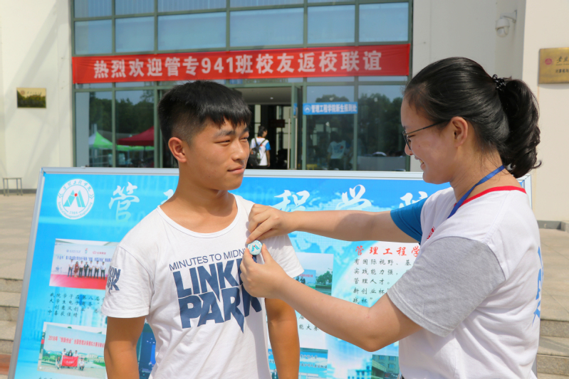 管理学院志愿者整齐统一的服装是校园里一道亮丽的风景线,他们忙碌的身影在人群中穿行。志愿者手中的院徽是送给小萌新们的礼物,为你戴上小小院徽,欢迎加入管院大家庭。