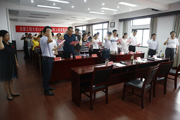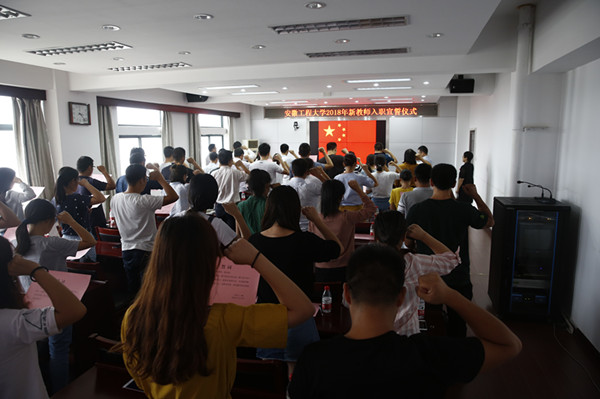 9月10日下午,在第34个教师节到来之际,学校在行政楼1121会议室举行新教师入职宣誓仪式。校党委书记刘宁、副书记苏国红、副校长叶常林出席仪式,2018年新进教师参加了宣誓仪式。仪式由副校长叶常林主持。