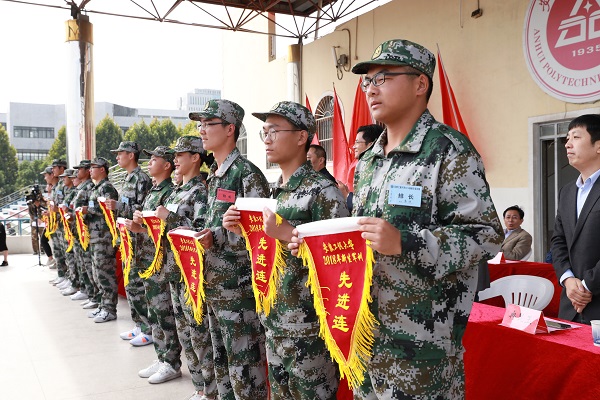 苏国红代表学校向支持我校军训工作的芜湖武警支队表示感谢,向以退役复学学生和国旗班优秀学生代表组成的第二期教导大队表示感谢,向参训的全体同学、全程陪同的教导员、指导员、学长导员,以及负责组织开展军训和后勤保障的同志们致以亲切的慰问。苏国红指出,5200余名新生刻苦训练、努力拼搏、奋勇争先,完成了规定科目的军事技能训练。同学们经历了日晒、风吹、雨淋的考验,展现出了当代大学生挑战自我、超越自我的精神和良好的精神面貌。其间,组织观看爱国主义影片,举办了开学典礼,参加了迎新晚会,组织了精彩瞬间比赛,强化了爱国爱军爱校教育,收到了良好的效果。苏国红寄语全体新学生,要在今后的学习道路上继续奋勇前行,要专注,专注于所学专业,专注于每一门课,专注于学习中的点点滴滴,静下来多学习、多读书;要坚持,延续军训的精气神,全力以赴投入到新的大学学习中去;要创新,时代呼唤创新,要勤于思考、善于学习、勇于探索、精于提炼,把握创新脉搏,跟上时代和社会前进的步伐。