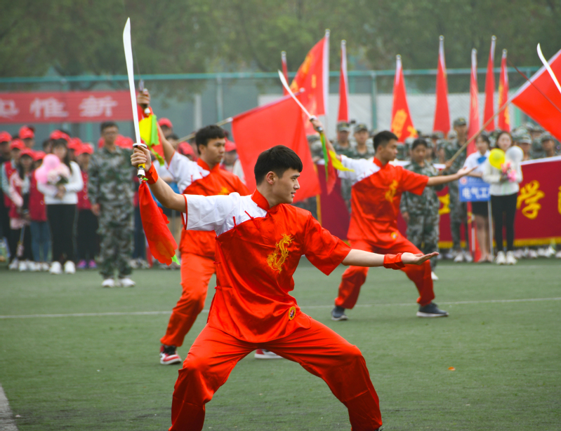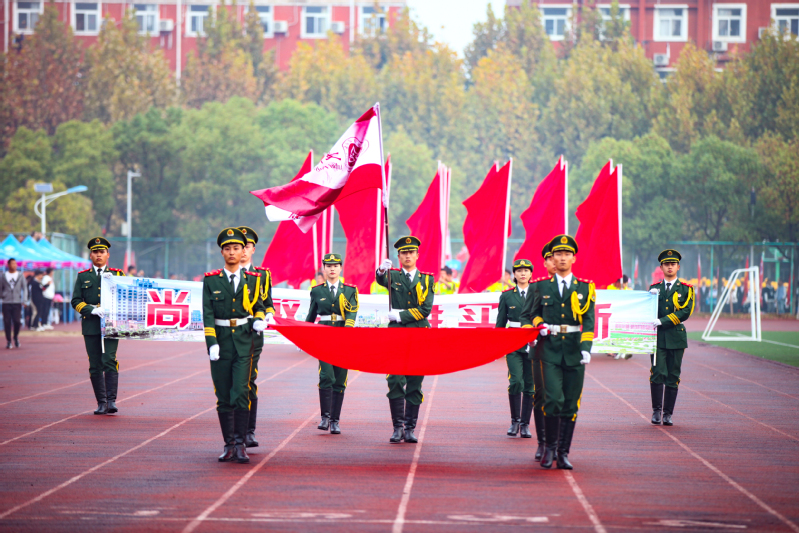 伴随嘹亮的《运动会进行曲》,国旗班高举鲜艳的五星红旗、“尚德敏学 唯实惟新”的校训和校旗,迈着整齐的步伐走过主席台接受检阅;红旗队与花束队紧随其后,身穿红色裁判服的裁判组、身穿黄色制服的“阳光之旅”志愿者代表队,以及他各方阵依次入场。原创时装展、特色工装秀、创意二维码、精彩青春风……武术、啦啦操、拉丁舞、扇子蹈等表演将全场气氛推至高潮。铿锵有力的步伐,高亢激越的口号,精彩纷呈的汇演,充分体现了全校师生积极参与全民健身活动的高昂热情。