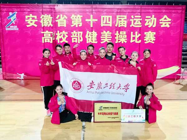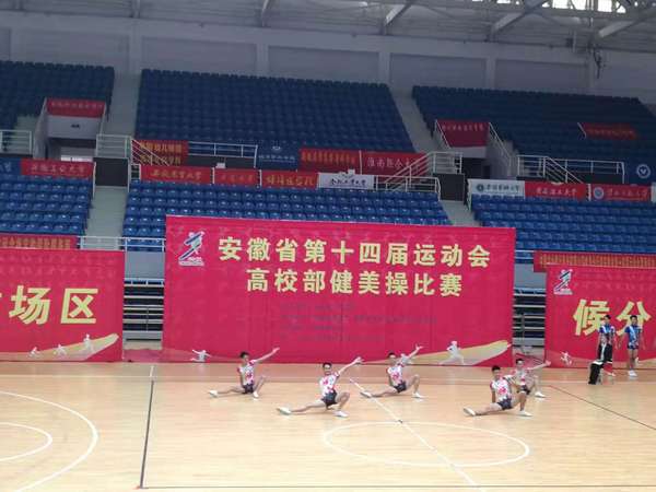 作为安徽省第十四届运动会的压轴赛事,高校部健美操比赛于10月20至24日在蚌埠龙湖体育馆举行。该项赛事是安徽省最高级别的比赛,吸引了全省51所高校的近千名学生参赛。我校健美操队在领队胡好,教练员杨菲菲、李品仙带领下,派出10名运动员参加八个项目的比赛。通过五天的激烈角逐,我校运动员以高规格的技术动作、新颖的节目创编、完美的场上发挥,获得了裁判团、参赛学校的教练员和运动员的高度评价,最终获得了六枚金牌,一枚银牌,一枚铜牌的傲人战绩,再次捍卫了我校健美操项目在全省的领先水平,展示了我校大学生的积极进取的精神风貌,为学校争得了荣誉。