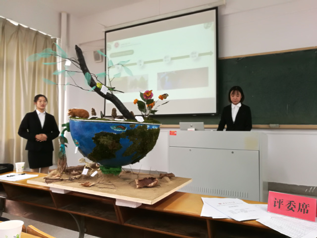 大赛作品分动物标本、植物标本、创新创意三个参赛类别,参赛学生组队进行标本的设计、采集及制作,并针对标本设计、原料采集、制作工艺、制作过程、创新点及先进技术的应用等方面进行现场介绍和答辩。14支参赛团队通过PPT依次汇报了标本制作过程中材料选择和处理,并对作品背后蕴含的寓意进行了说明。