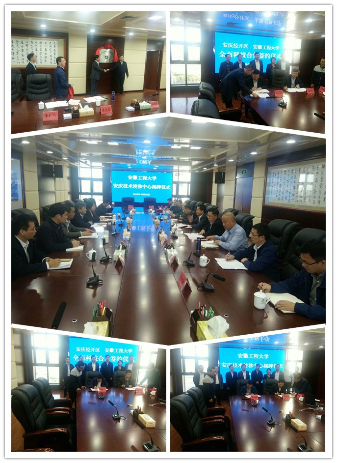 最后,王绍武与江兴代共同为安徽工程大学安庆技术转移中心揭牌,并代表学校与曹红斌签订了科技合作协议;徐晓光副教授与安徽神钢电工机械有限公司、疏达副教授与安徽中力车辆制动系统制造有限公司签署了合作协议。