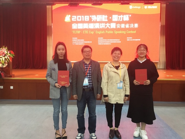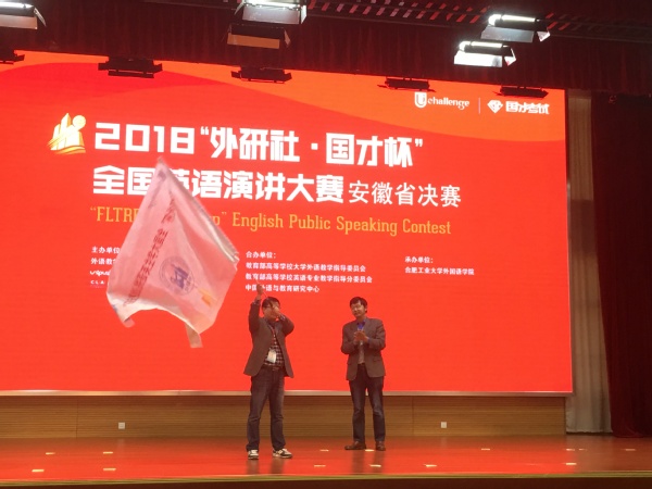 10月26日至28日,“外研社·国才杯”全国英语演讲大赛(安徽赛区)在合肥工业大学举行。外国语学院英语专业16级选手汪珊同学荣获二等奖,生化学院孙梦同学获三等奖,参赛指导教师许庆美和李新国也分别获得相应指导教师奖。外国语学院副院长黄焰结应邀作为本次赛事评委,并在大赛闭幕式上,接过了大赛旗帜。 2019年“外研社·国才杯”全国英语演讲大赛(安徽赛区)将在我校举行。