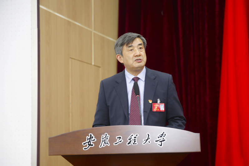 刘宁同志代表中国共产党安徽工程大学第一届委员会向大会作题为《聚焦内涵发展 写好奋进之笔 开启国内知名省内一流的地方特色高水平大学建设新征程》的工作报告。