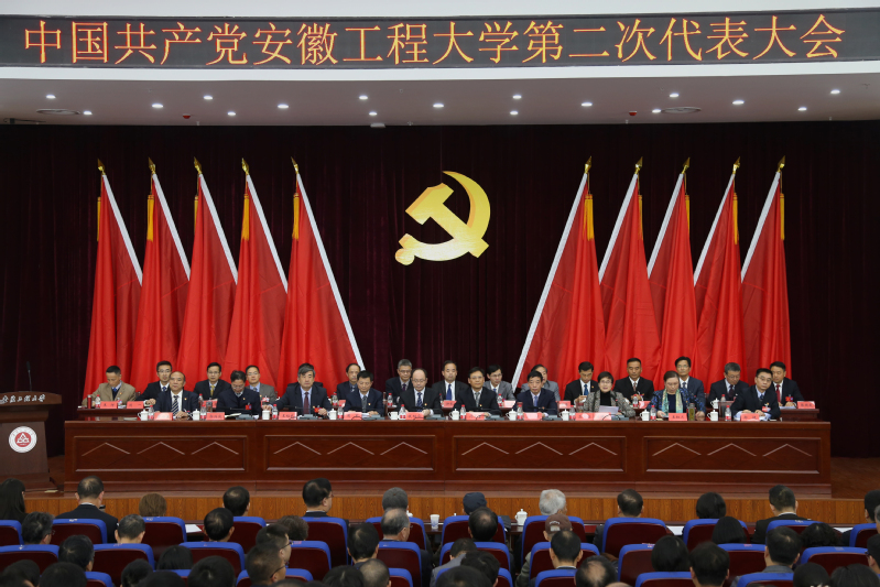 深秋校园,丹桂飘香,处处洋溢着丰收的喜悦。11月2日下午,中国共产党安徽工程大学第二次代表大会在图书综合楼5楼报告厅隆重召开。这是在中国特色社会主义进入新时代,学校奋进“十三五”、攻坚“双一流”、奋战博士点的关键时期召开的一次重要大会。大会主要任务是:以习近平新时代中国特色社会主义思想为指导,深入学习贯彻党的十九大精神、全国教育大会精神,认真总结学校第一次党代会以来的工作,深入分析面临的机遇和挑战,科学确立未来一个时期特别是今后五年的发展目标和重点任务,团结和带领全校广大党员和师生员工不忘初心、砥砺前行,开启“国内知名、省内一流的地方特色高水平大学”的新征程。
