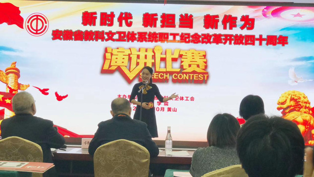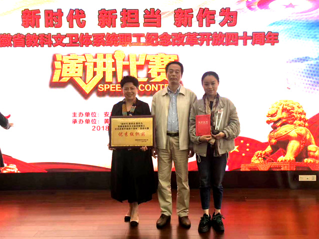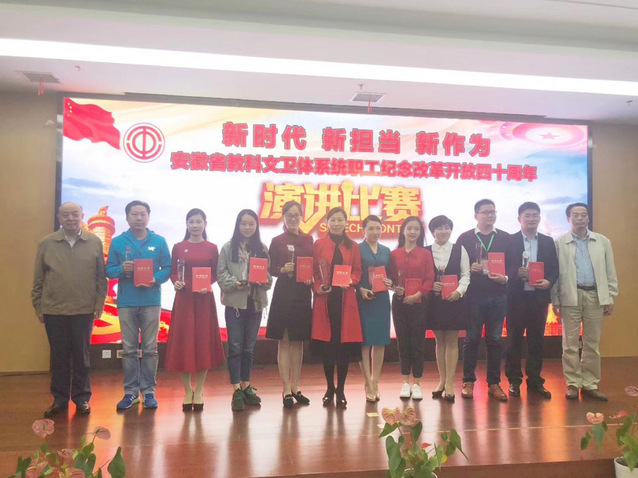 为庆祝改革开放四十周年,10月29日至31日,由安徽省教科文卫体工会主办的“新时代 新担当 新作为”全省教科文卫体系统职工演讲比赛在黄山学院举行,我校由校工会副主席张寅红带队参赛。经过两天的激烈角逐,人文学院张茜老师喜获一等奖,我校工会荣获“优秀组织奖”。