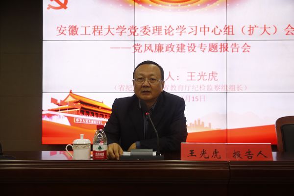 在学校第二次党代会胜利召开,选举产生新一届“两委”委员之际,学校于11月15日下午在图书综合楼202会议室召开党委理论学习中心组(扩大)首次集中学习会,邀请省纪委委员、省委教育工委委员、省纪委监委驻省教育厅纪检监察组组长王光虎作题为《深刻吸取教训警示 从严从紧管住自己》的专题辅导报告。报告会由校党委书记刘宁主持。