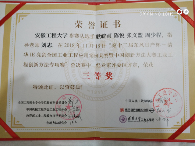 11月17至18日,第十三届“东风日产杯”清华IE亮剑全国工业工程应用案例大赛暨中国创新方法大赛工业工程创新方法专项赛在清华大学召开。在本次比赛中,我校选派由丁一老师和刘志老师指导的工业工程系代表队(三队共12人)荣获三等奖。这是我校工业工程系首次在此项比赛中获奖。
