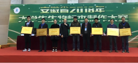 安徽省大学生生物标本制作大赛作为一项B级赛事,旨在进一步激发生命科学类专业大学生专业学习热情,加强实践能力、创新能力和合作精神的培养,不断提高人才培养素质,一直受到省内各高校的广泛关注。我校是第二次参加该项比赛,今年6月启动了该项赛事,校领导、教务处及生化学院高度重视,积极有序组织参赛事宜,各指导教师利用课余时间精心指导学生开展标本制作,并于10月完成校级初赛和复赛,选取8件作品参加了该次比赛。