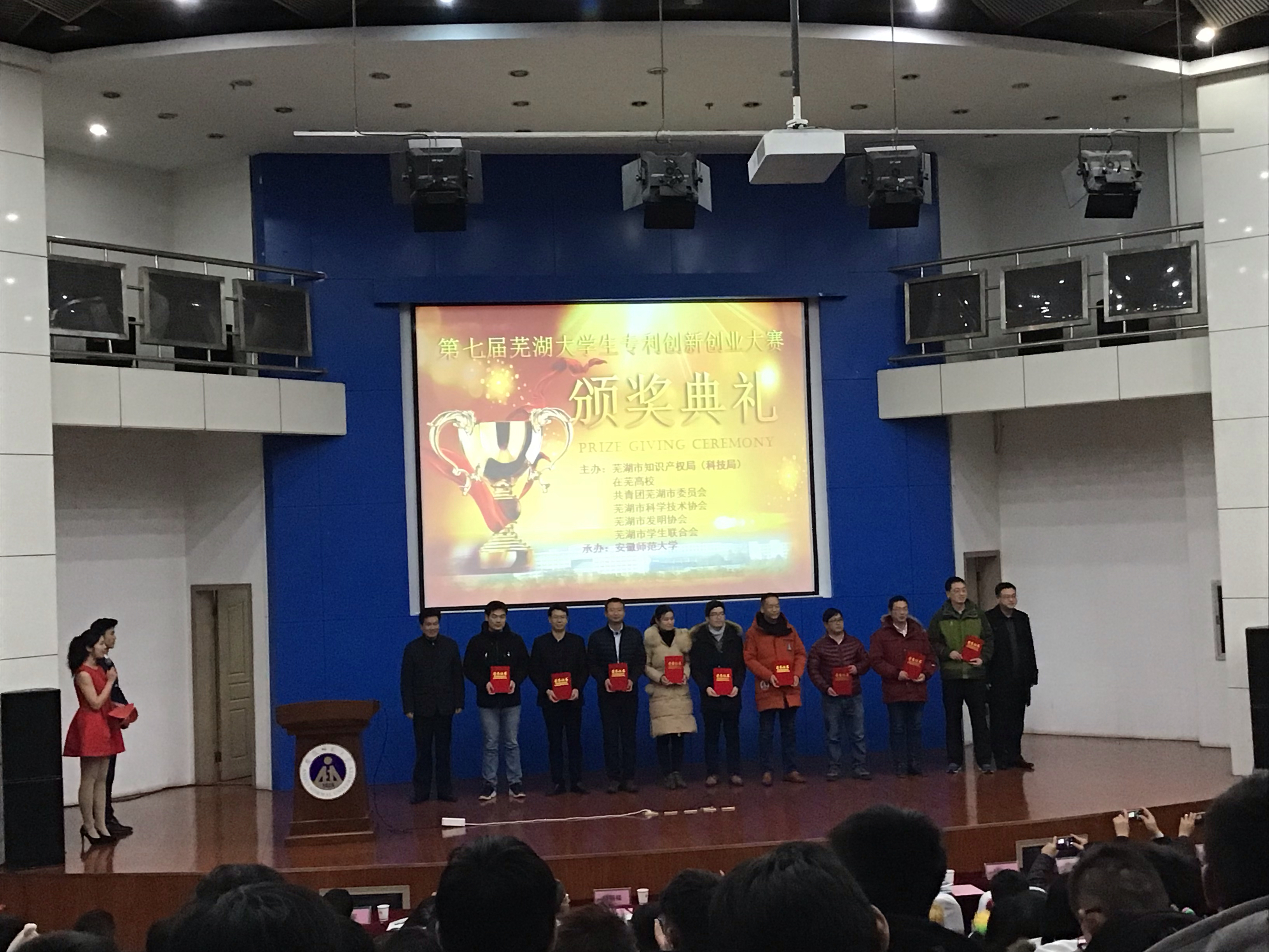 12月8日,第七届芜湖大学生专利创新创业大赛在安徽师范大学敬文报告厅正式拉开帷幕。芜湖市人大常委会副主任孙国正及芜湖市各高校教师代表出席决赛,来自芜湖市各高校学生到场观摩比赛。副校长叶常林应邀出席颁奖典礼。科技处处长吴之传、副处长何朝林率我校代表队50余人,与在芜高校领导及科研部门负责人、学生代表共500余人观摩决赛。