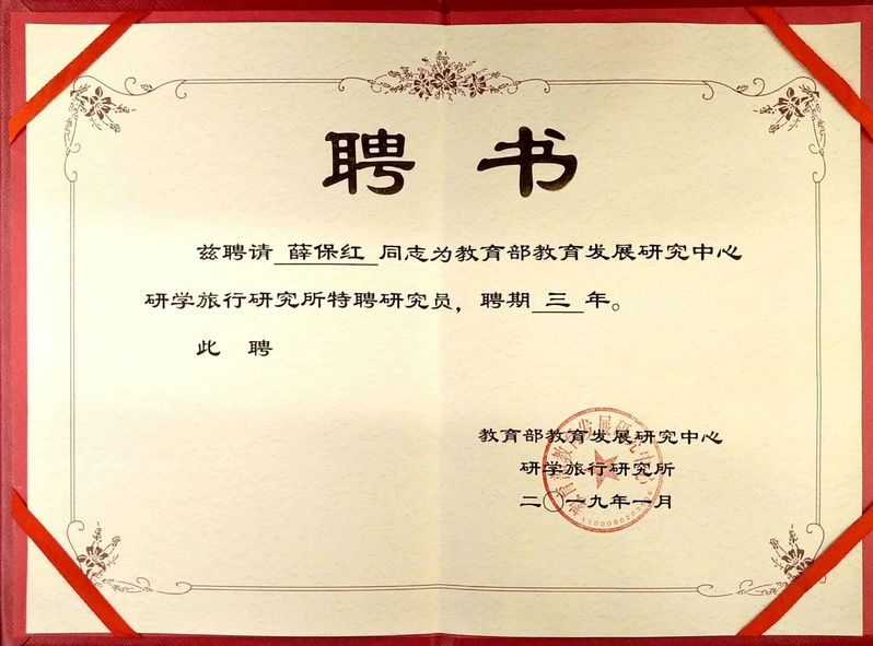 我校薛保红老师等16位同志被聘为教育部教育发展研究中心研学旅行研究所特聘研究员。