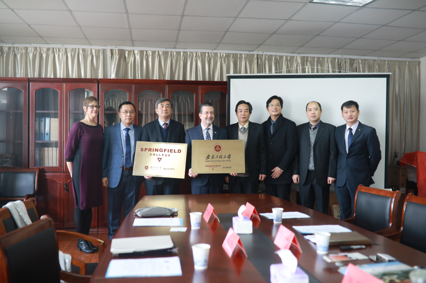 应我校党委副书记、副校长王绍武的邀请,美国春田学院副校长Stuart. D. Jones一行3人于3月4日来我校访问。上午8时,双方在国际处会议室举行了正式会谈,党委副书记、副校长王绍武会见了Stuart. D. Jones一行,国际处处长金成星与体育学院负责人文才新、胡万祥参与了会谈。