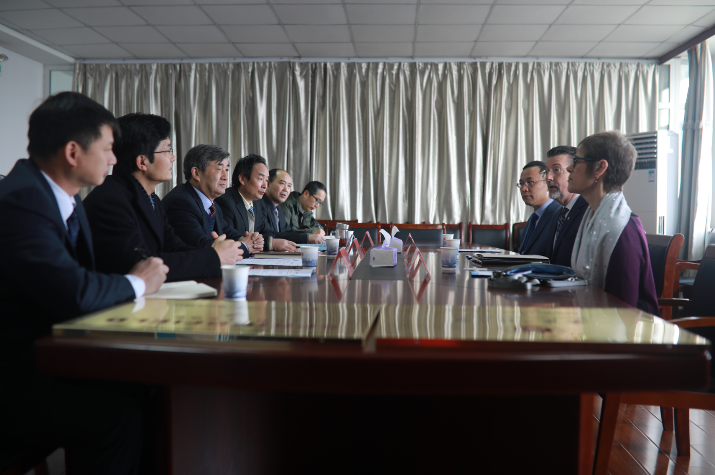 王绍武首先对Stuart. D. Jones一行的来访表示了欢迎,并介绍了我校的办学历史、学科与专业建设成就以及国际交流与合作等情况。Stuart. D. Jones对王绍武的热情邀请和接待表示感谢,双方互赠了友好学校牌匾。随后,双方就具体合作事项进行了深入的交流与协商,主要包括:科学研究、教师培训、长短期学生交流、合作办学项目等。双方对会谈表示满意,并签署了两校合作备忘录。