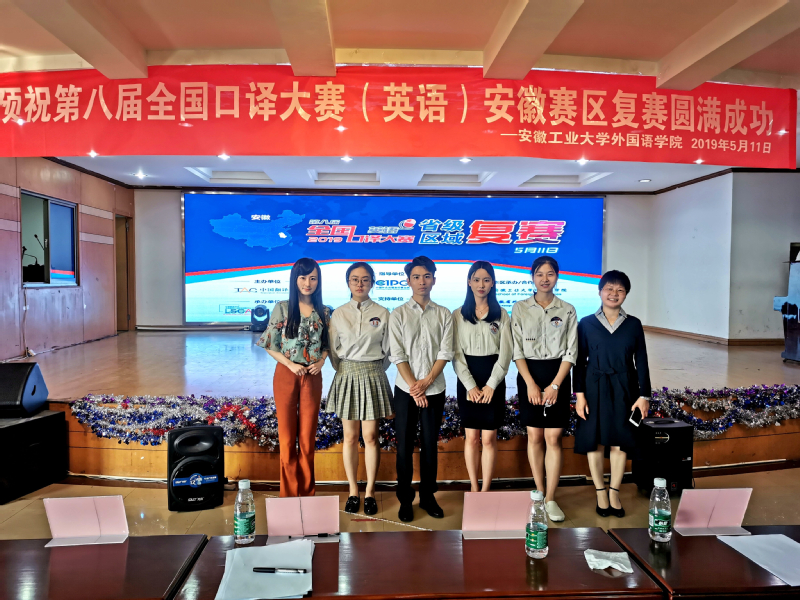 (本网讯)5月11日,第八届全国口译大赛(英语)“LSCAT”杯安徽赛区复赛在安徽工业大学举行,来自安徽大学、合肥工业大学、安徽师范大学等20余所省内高校的110名同学参加了比赛。外国语学院英语专业的汪珊、任婧婧、徐彤、周峰同学代表我校参赛。我校选手在本次比赛中成绩突出,3位选手在激烈的淘汰赛中脱颖而出,成功晋级第二轮决赛,并最终斩获二等奖1个,三等奖2个,优胜奖1个,其中汪珊同学将作为安徽选手代表之一,晋级6月份举行的华东大区赛。口译教师朱琦和许庆美荣获大赛优秀指导教师奖。
