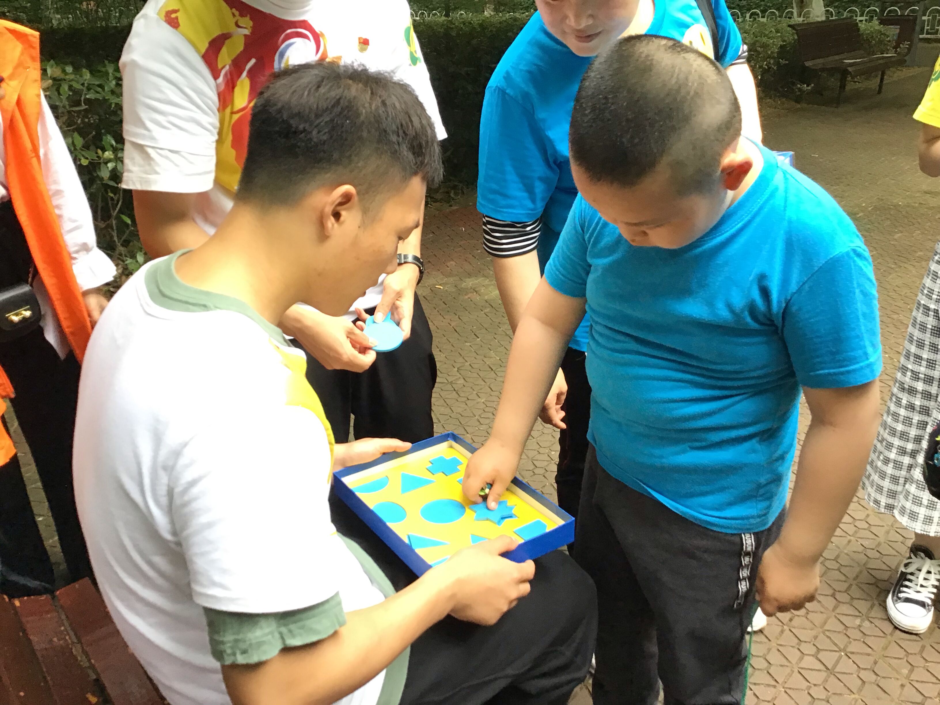 在全国第二十九个助残日到来之际,轻化学生党支部策划了此次助残日主题党日活动,在芜湖市残疾人综合服务中心的支持和帮助下开展了此次活动。此次活动以“亲子定向寻宝大赛”形式为残疾儿童送去关爱与温暖。上午八点,支部成员与市残疾人综合服务中心的人员一起如期出现在赭山公园,中心负责人为大家介绍了残疾孩子的基本状况以及志愿活动展开时的注意事项。支部志愿者们分为七个组,在不同的地点等待残疾小朋友的到来并与他们一起完成踢球、读书、套圈、拼图等游戏。此次中心组织的均为听力障碍小朋友,对于首次和听障小朋友接触的大学生来说存在一定的沟通困难,但是支部党员克服困难耐心的陪他们一起游戏,增强了小朋友与他人的沟通能力。