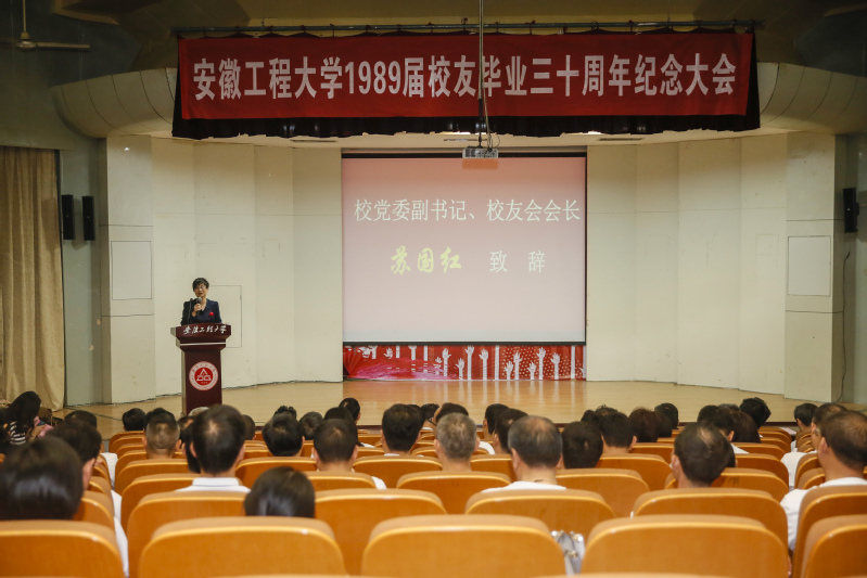 5月19日上午,安徽工程大学1989届校友毕业30周年返校纪念大会在学术报告厅举办,机制85级、电气85级的校友们千里迢迢回到母校,与昔日的老师们欢聚, 畅叙学校发展与同窗情谊。校党委副书记、校友会会长苏国红出席纪念大会并致辞,副校长郭兴众,发展规划处(校友会秘书处)、有关学院负责人和老教师代表参加纪念大会和返校系列活动。