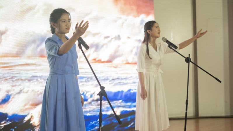 书香墨韵看世界,诗情画意读中国。由校附属幼儿园带来的《游子吟》拉开了诗歌咏诵活动的序幕;配乐诗朗诵《教我如何不想她》重现了诗人刘半农在英国留学期间对祖国深深的眷念之情;中英文双语版的《再别康桥》饱含深情、意境优美;《英雄》赞颂了为人民奉献牺牲的英雄们,更将现场气氛推向高潮;《老人与海》带我们看到了中华民族伟大复兴征程上的又一个春天;《读中国》将一本厚重的中国文明史娓娓道来。