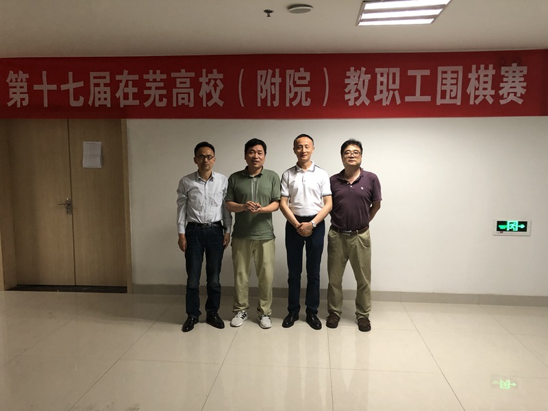 (本网讯)5月25日,第十七届在芜高校(附院)教职工围棋赛在芜湖职业技术学院举行。我校教职工围棋协会组队参加比赛并荣获团体第三名,二等奖的好成绩。