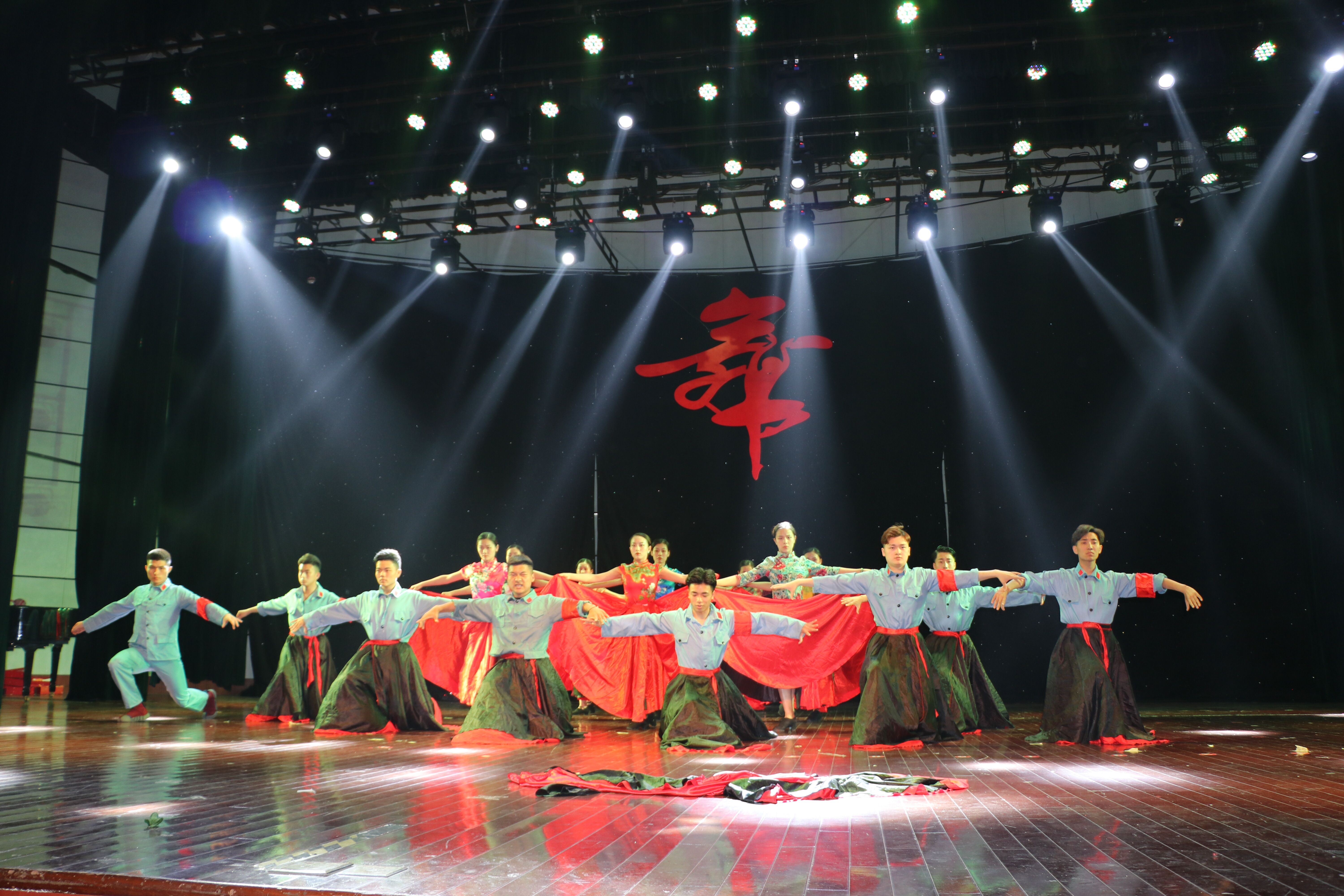 (本网讯)5月24日晚上7点,为纪念五四运动100周年和庆祝新中国成立70周年,由校团委主办,体育学院承办的第九届“红色旋律,飞舞青春”舞蹈大赛决赛在师生活动中心拉开帷幕。本次大赛设专业组和普通组两个组别,共十四支队伍参赛,另有四支队伍参与助演。本次大赛共邀请了5名校内外的专业舞蹈老师参与评审和打分。校党委常委副校长郭兴众、校团委负责人、体育学院党政领导以及校内外嘉宾全程观看了本场舞蹈大赛。