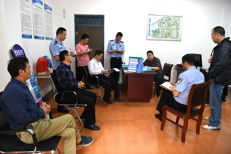 (本网讯)5月31日,省公安厅、省教育厅组成专项督导组来校督察校园警务室建设工作,校党委常委、副校长郭兴众,市公安局国保支队、鸠江公安分局、城东新区派出所及学校办公室、宣传部、保卫处等职能部门负责人参加汇报会。