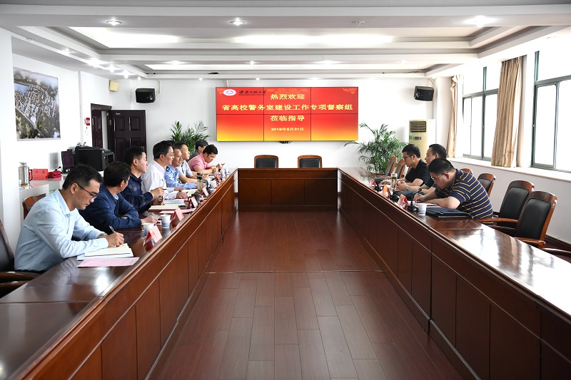 郭兴众代表学校对省督查组一行来校督查指导工作表示热烈欢迎。郭兴众指出,学校党政高度重视安全稳定工作,严格落实上级要求,在学校总务处、后勤服务集团、国资处、保卫处等部门的密切配合下,在公安机关的大力支持下,我校警务室建设迈入新台阶;学校将进一步完善安全防控网建设,加强警校联动,充分发挥校园警务室“防范、处置、宣传、服务”的职能作用,共创平安和谐校园。