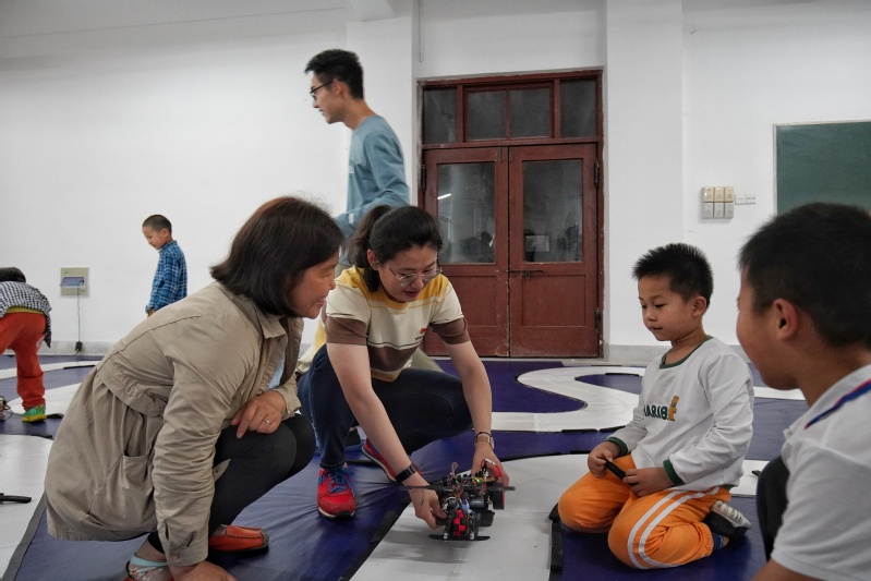随后,小朋友们有序参观了电子科技协会学科竞赛比赛赛道,并观看了智能小汽车和智能小飞机的运行,小朋友们表现出极大的热情与好奇心。