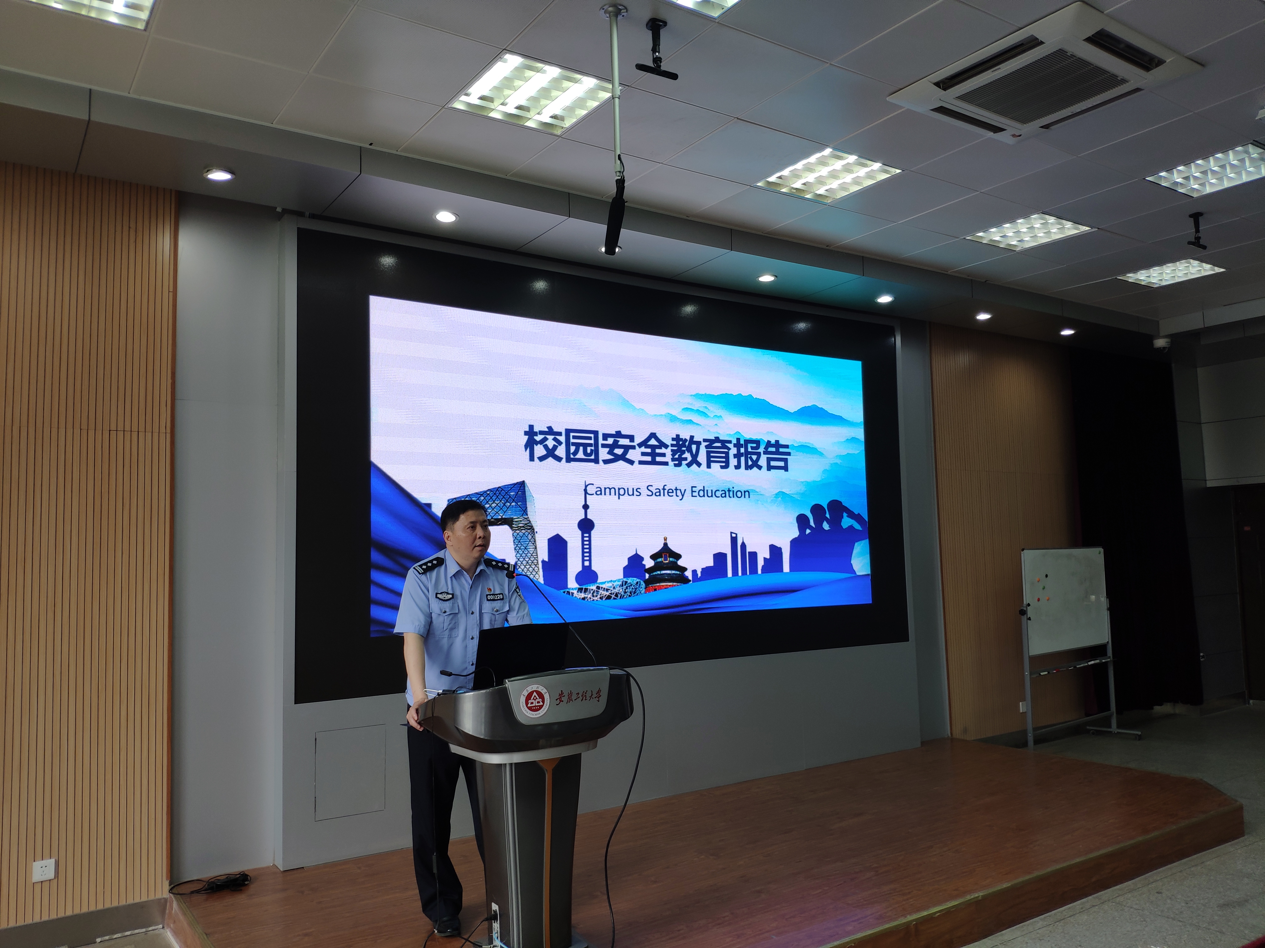 (本网讯)为进一步提高广大师生的安全防范意识,消除安全隐患和麻痹思想,5月31日上午学生处在五教117录播教室举办了关于安全教育专题报告会。此次报告会邀请到了芜湖市公安局鸠江分局局长尹兵担任主讲,全体辅导员和各学院学生干部代表聆听了报告。