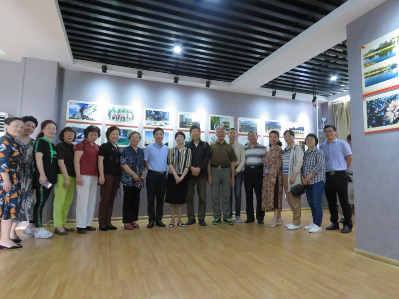 开展仪式上校领导们及有关部门负责人与离退休教职工摄影师们合影留念。