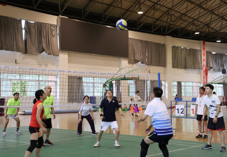 本网讯 为丰富教职工业余文体生活,促进教职工身心健康,营造快乐、和谐、团结奋进的氛围,5月27日至6月12日,由校工会、体育学院主办的第二十三届教职工气排球比赛在校体育馆举行。赛前,举行了简短的开幕式,校党委副书记苏国红、主办部门领导和各二级党组织主要领导参加了开幕式。正赛期间,副校长叶常林到场观看比赛。