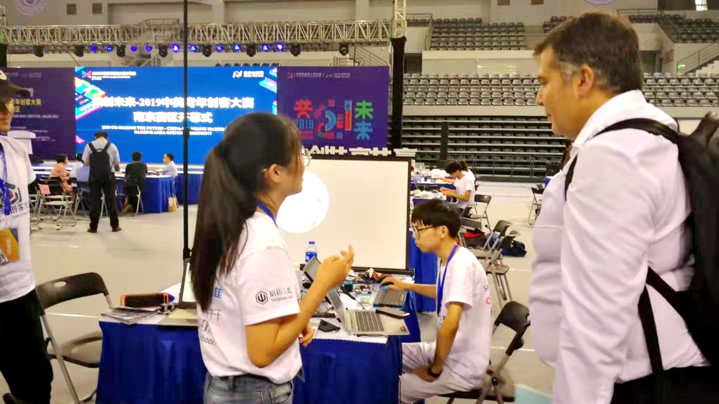 本网讯 6月28日至6月30日,2019“共创未来——中美青年创客大赛”南京赛区选拔赛在南京理工大学体育馆隆重举行。我校计算机与信息学院修宇老师和艺术学院李响老师联合指导的“超级小白”代表队在180个团队中脱颖而出入围前40名,获得南京赛区选拔赛参赛资格。
