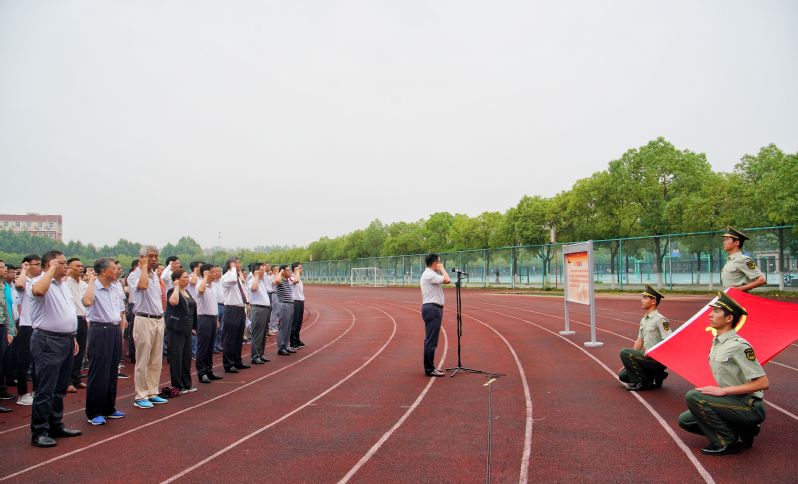 本网讯 7月1日清晨,党员校级领导、党委常委以及党委职能部门负责人、二级党组织书记、党员师生代表共500余人齐聚学校第一田径场,参加安徽工程大学庆祝建党98周年“不忘初心、牢记使命”主题党日活动。