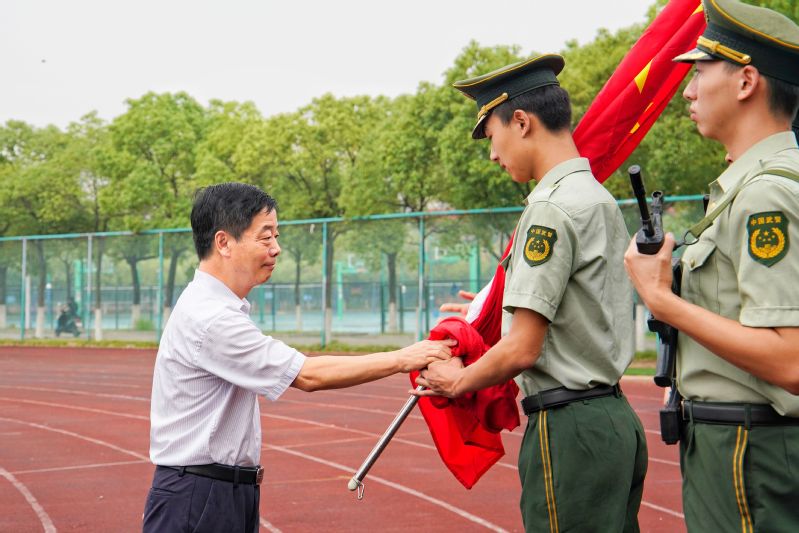 上午7:00,校党委书记刘宁向校第二十二届国旗班授旗,升旗手、护旗手以及国旗班队员排着整齐的队列,迈着自信的步伐,威武地走向升旗台。在庄严的国歌声中,在全体师生党员的瞩目下,鲜艳的五星红旗在学校第一田径场徐徐升起。