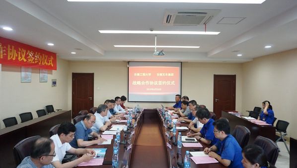 周峻首先就校企双方新一轮战略合作协议框架和具体合作内容作了简要介绍。接着,张德进致欢迎辞,他指出,安徽工程大学是一所以工为主、在工科领域具有较强优势的多科性大学,学校重点学科、特色专业、科研创新平台与安徽叉车集团的产业链高度契合。双方在20多年的合作中,建立起深厚的友谊,成为了重要的合作伙伴。安徽工程大学为公司输送了优秀毕业生,许多同志已经成为公司独当一面的骨干,为公司发展起到了重要支撑作用。校企双方在上一轮五年合作中,从合作的深度和广度来看,取得了不错的成效,希望双方在新一轮合作中继续将工作事项落到实处,在新技术研究、定制化人才培养、企业职工思想政治工作研究等方面取得更多合作成果。