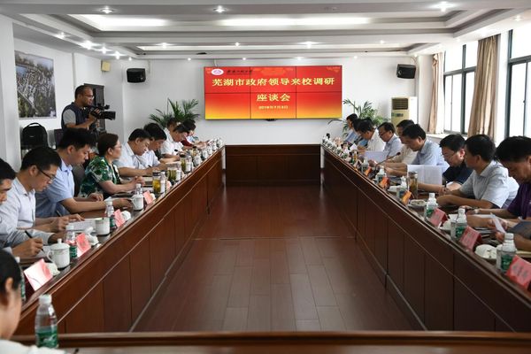 在调研座谈会上,刘宁对芜湖市长期以来对学校的关心和支持表示感谢,通报了学校发展的基本情况、市校前期合作成果、下一步工作打算以及希望芜湖市给予支持的事项等。他强调,学校始终坚持扎根地方、服务地方,以打造城市发展共同体的理念积极融入芜湖发展,积极打造支撑服务地方经济社会发展的人才库、科技库、思想库,在人才培养、科学研究、社会服务、文化传承与创新等方面与芜湖市开展了一系列卓有成效的合作。他表示,学校将坚持“以工为主、支撑产业、服务地方”的办学特色,深入融入芜湖经济社会发展,全面提高贡献度、支撑度,为芜湖市融入长三角一体化发展、打造长江经济带重要核心区作出新的更大贡献。