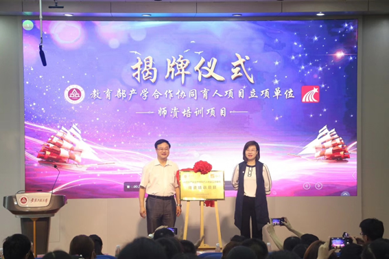副校长叶常林到会致辞,对参会教师放弃轮休,主动融入一流课程和“金课”建设的“课堂革命”行为给予了充分肯定,并对学校落实全国教育大会、新时代全国高等学校本科教育工作会议精神的具体举措和一流课程建设及“金课”建设的顶层设计进行了简要解读。随后,叶常林为我校教育部产学合作协同育人项目立项单位师资培训项目进行了揭牌。