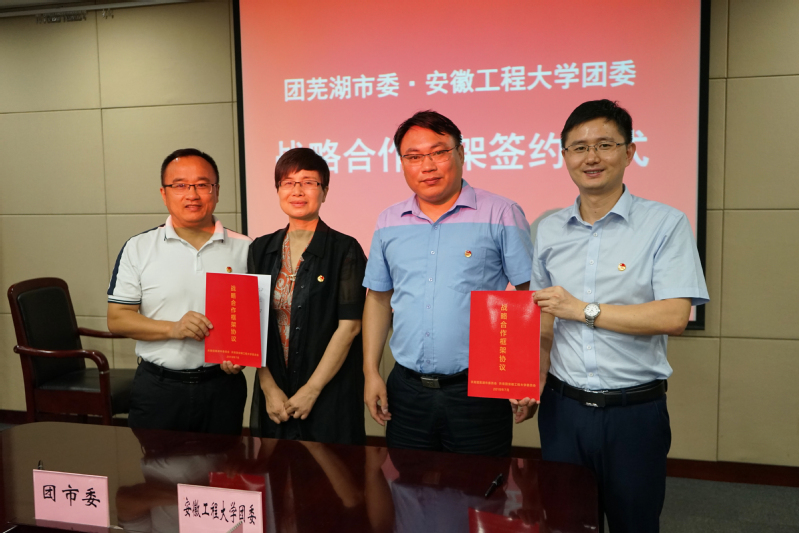 校团委副书记郭广春、团芜湖市委副书记杨磊分别代表校地共青团签署了《共青团芜湖市委员会与共青团安徽工程大学委员会战略合作框架协议》,决定围绕校地资源交流、合作实施“青马培养工程”、联合开展课题研究、加强大学生社会实践交流、开展大学生创新创业活动、开展新时代文明实践志愿服务活动、开展新媒体联盟共建、开展大学生政务实习等八个方面进一步加强互信与交流,建立长期稳定、全面友好的协作机制,共同推进校地共青团工作和芜湖青年工作的蓬勃发展。